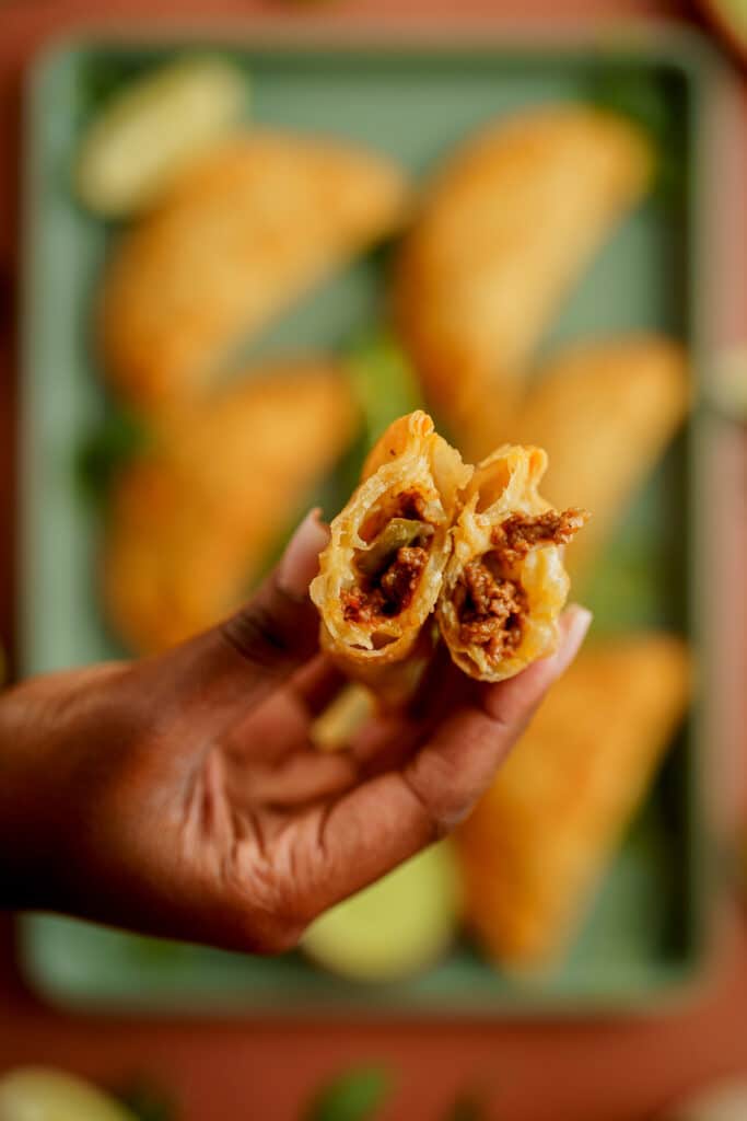 This version uses a deeply seasoned ground beef picadillo wrapped in ready-to-use empanada dough. No guesswork. No complicated folding techniques. Just a well-balanced filling and a crisp golden finish.
