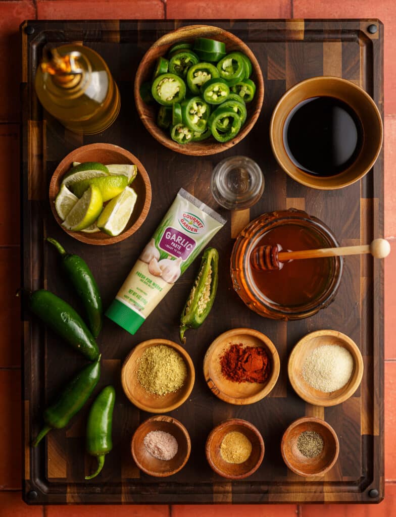 Fresh Jalapeños. Bring bright heat and a fresh pepper bite that contrasts with the honey.