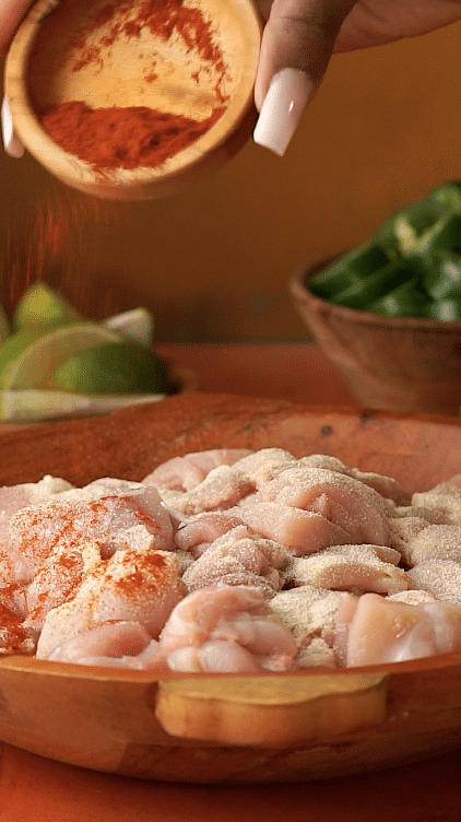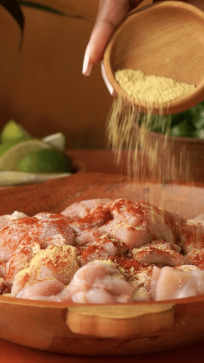 - Add the chicken thighs to a bowl and coat evenly with onion powder, paprika, garlic powder, chicken bouillon, and salt. Make sure each piece is well seasoned on both sides.