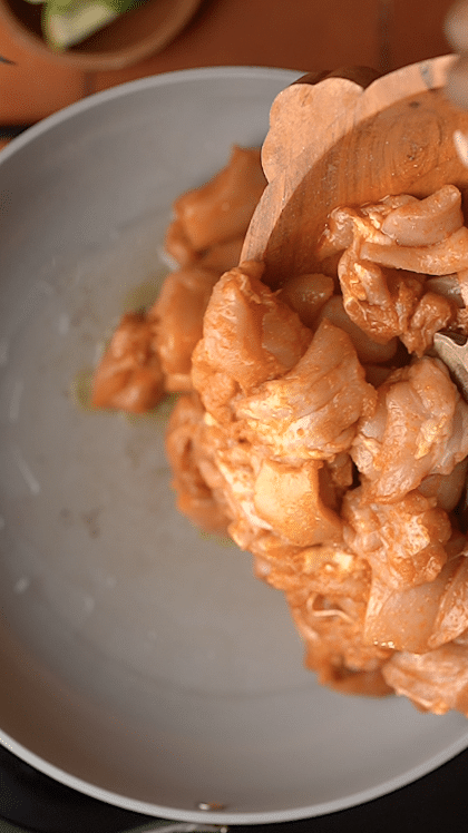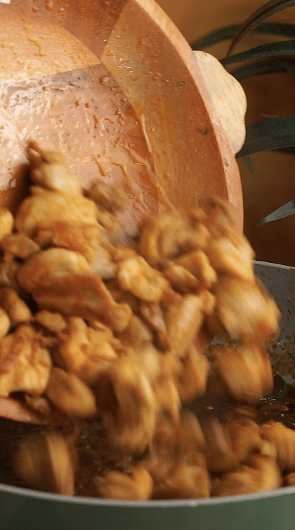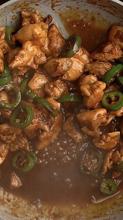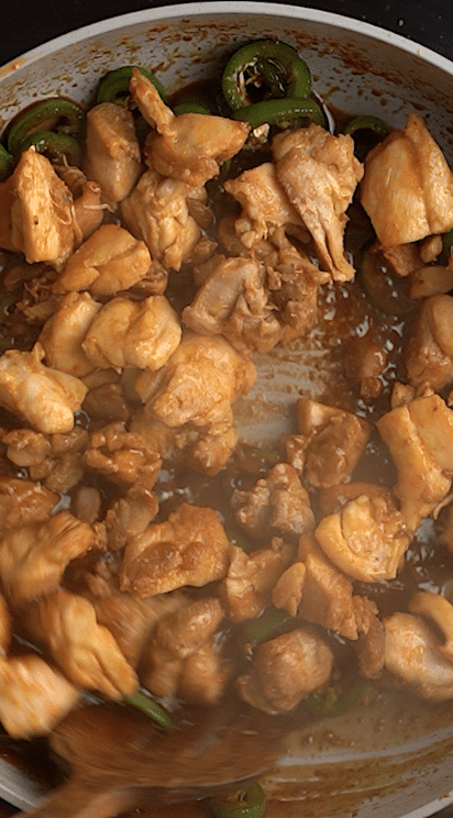 Once the glaze coats the back of a spoon, your chicken is ready. Taste and adjust salt or heat if needed.