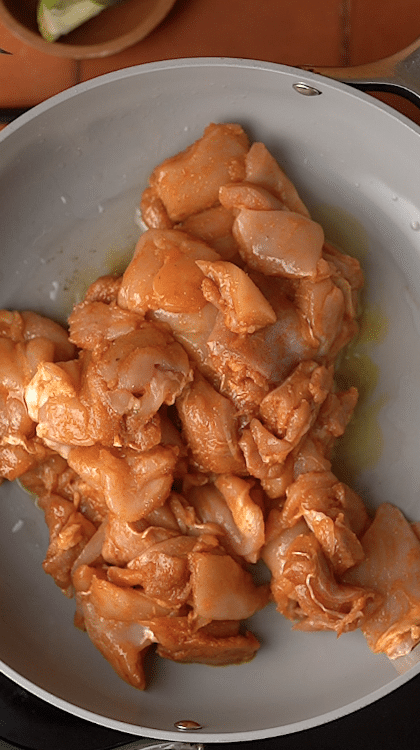 - Heat oil in a wide skillet over medium heat. Sear the chicken in batches until golden on both sides. You're building flavor here not cooking it all the way through yet.
