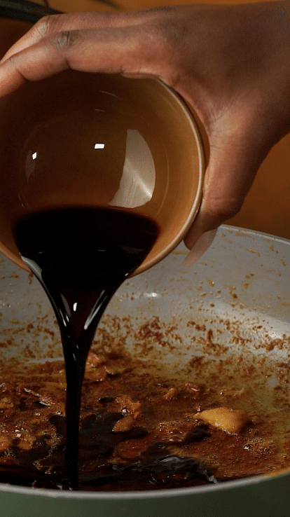 Low Sodium Soy Sauce. Provides umami and saltiness while keeping the sauce balanced.
